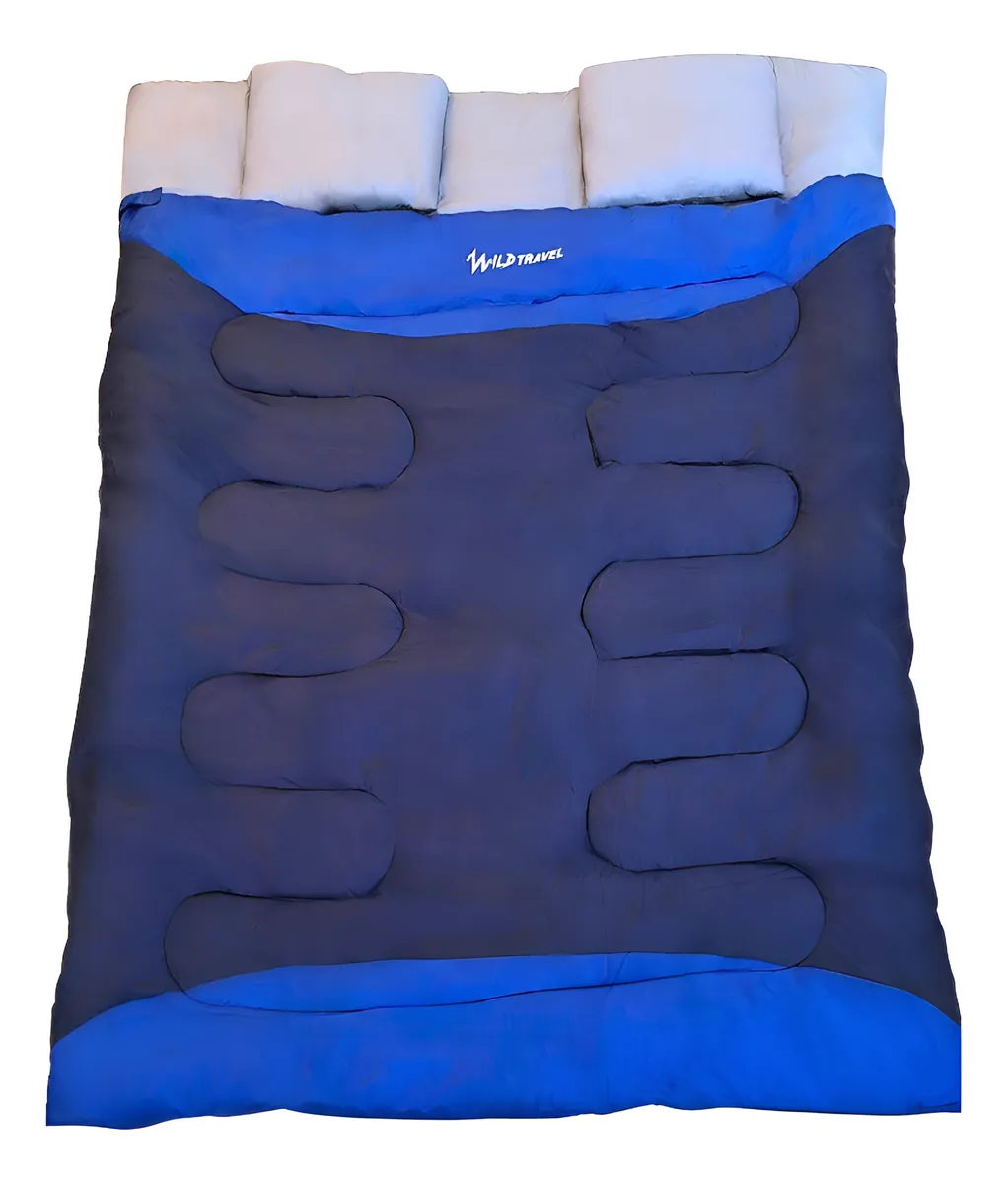 Saco De Dormir Dos Plazas Doble Wild Travel -5° +15° 3600g Azul Derecho